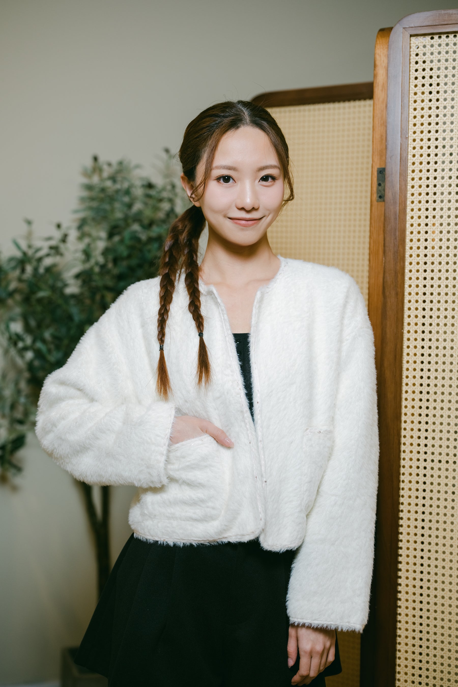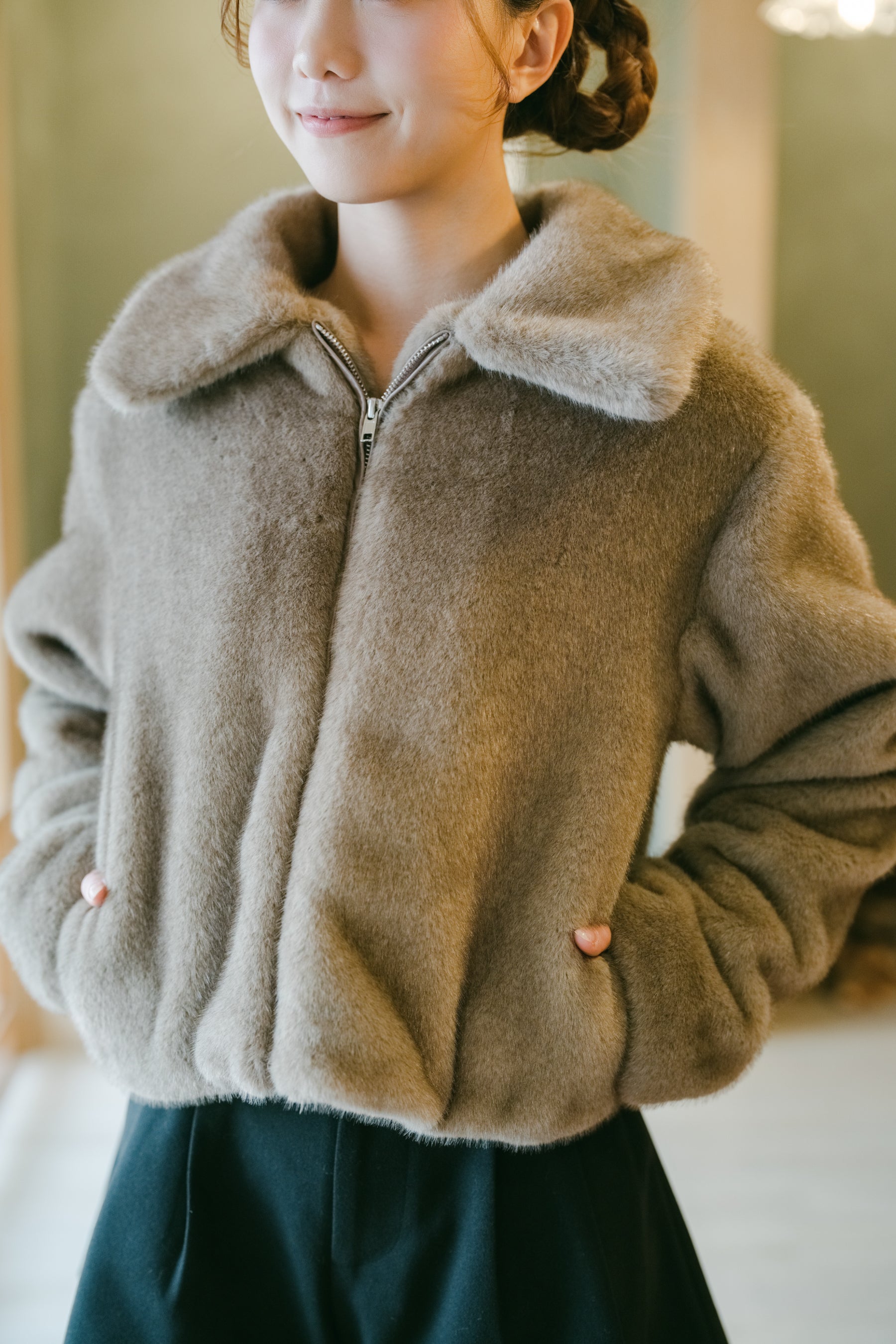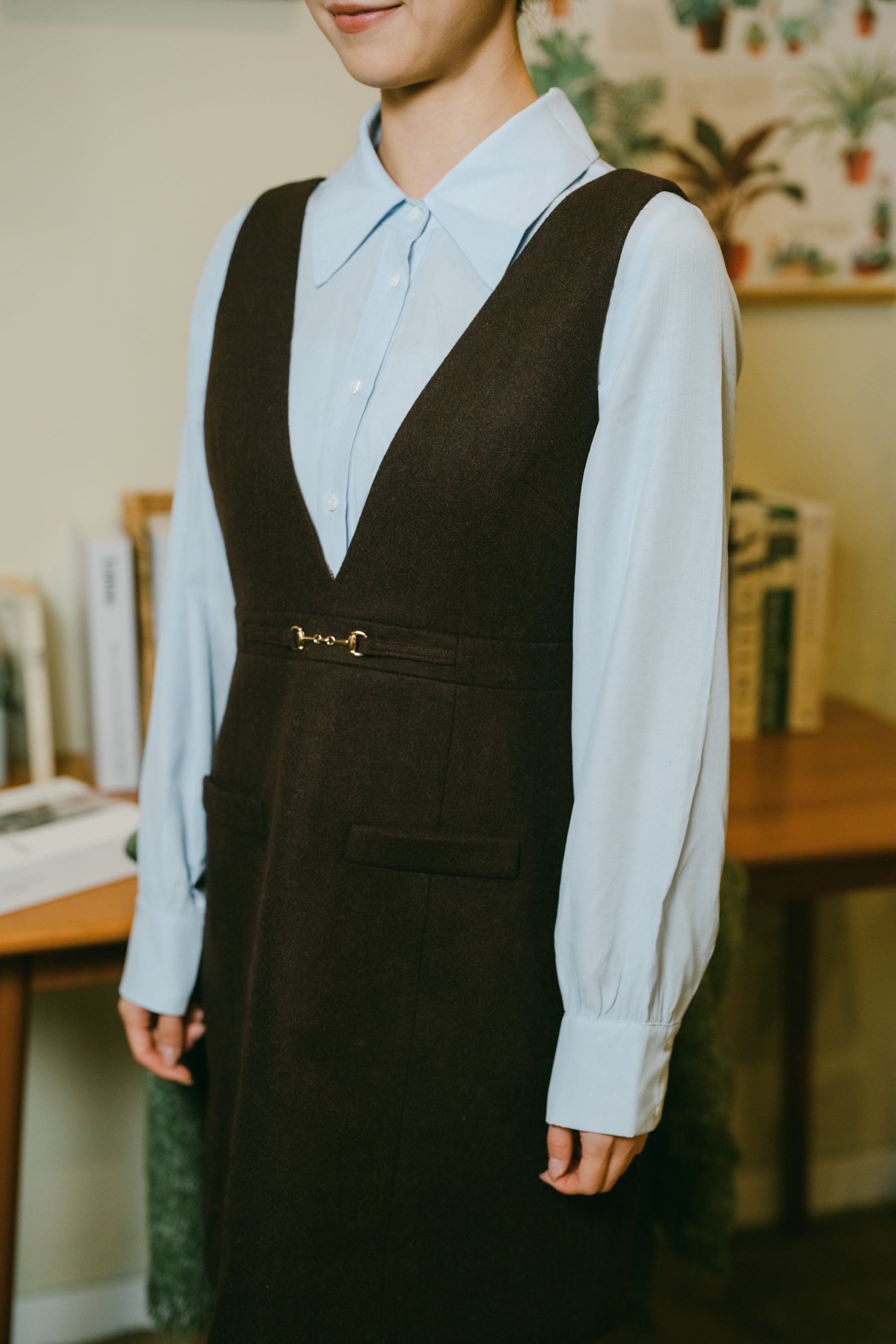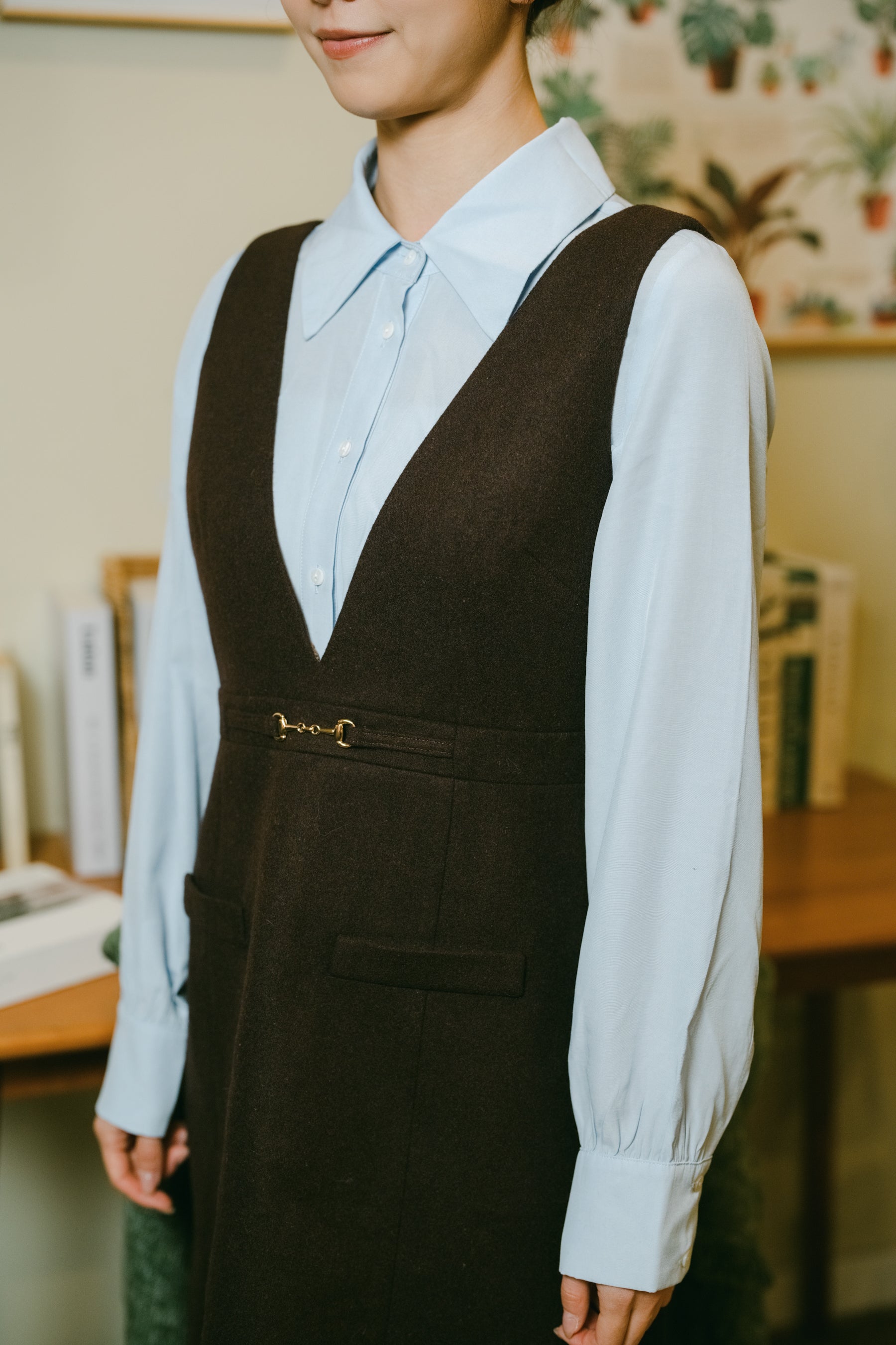 Pockets with stylish detailing, adding functionality.