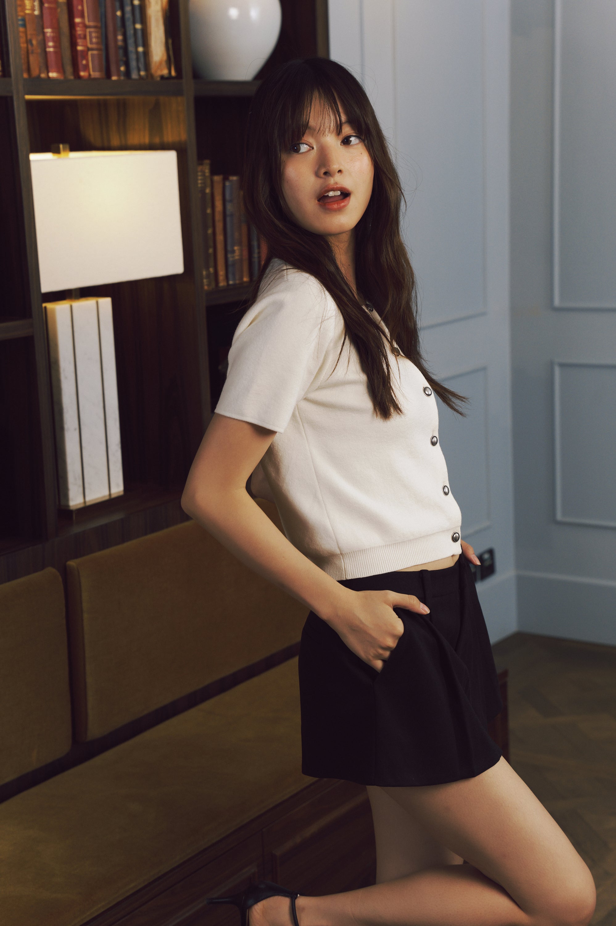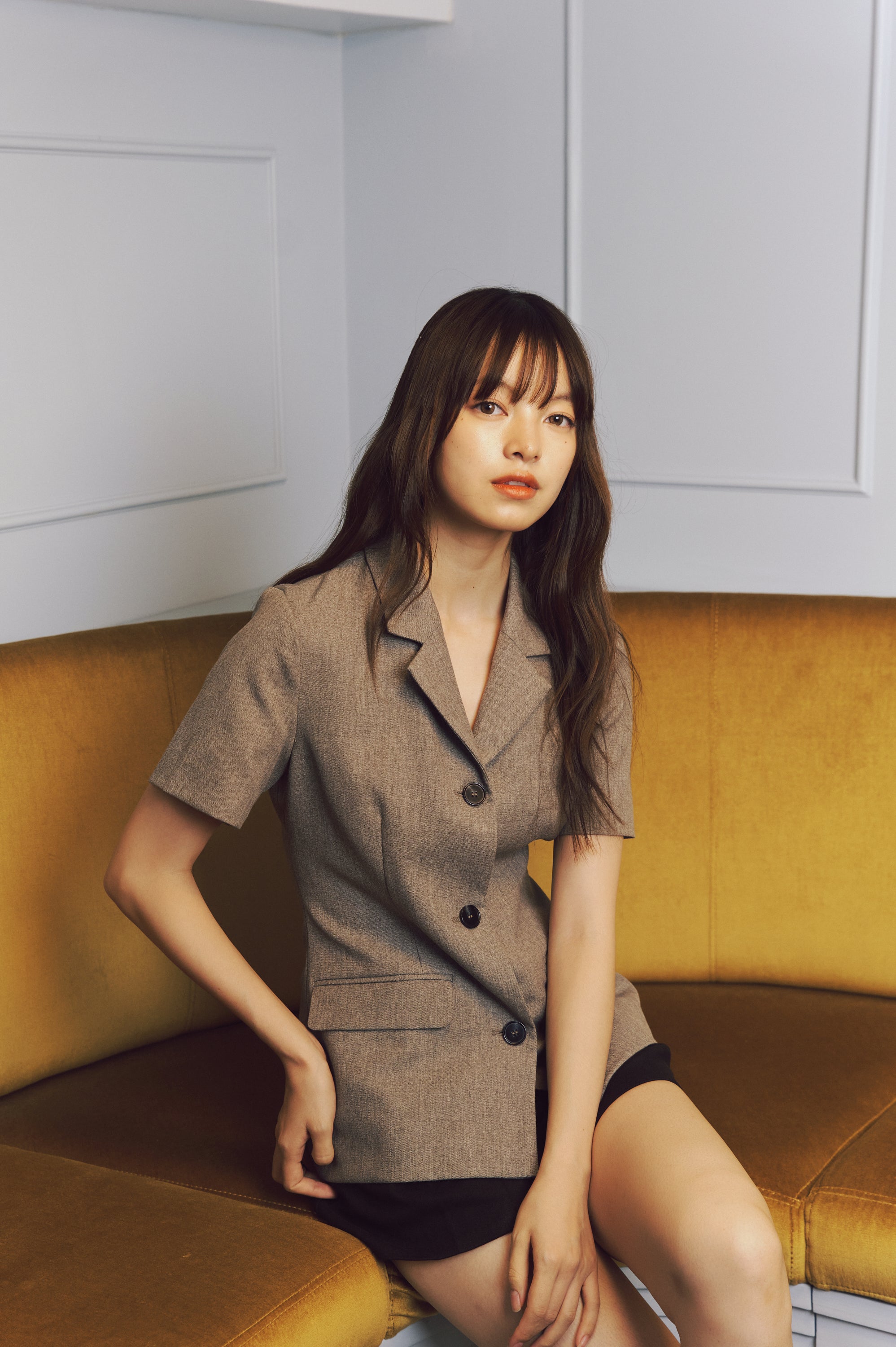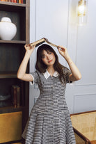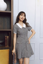 Flared skirt with pleats, enhancing the feminine shape.