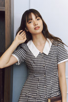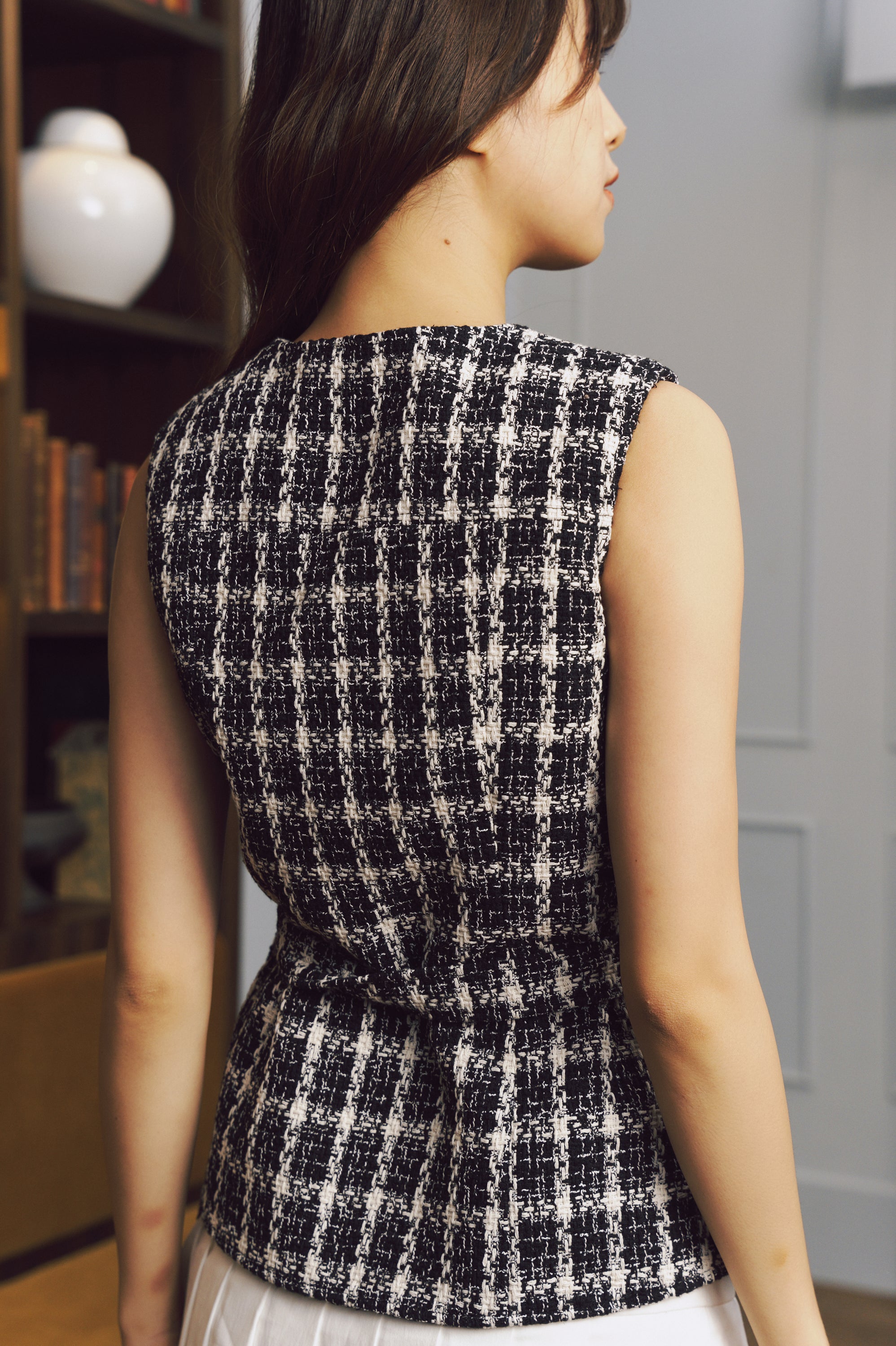 Classic houndstooth print, offering a timeless and stylish look.