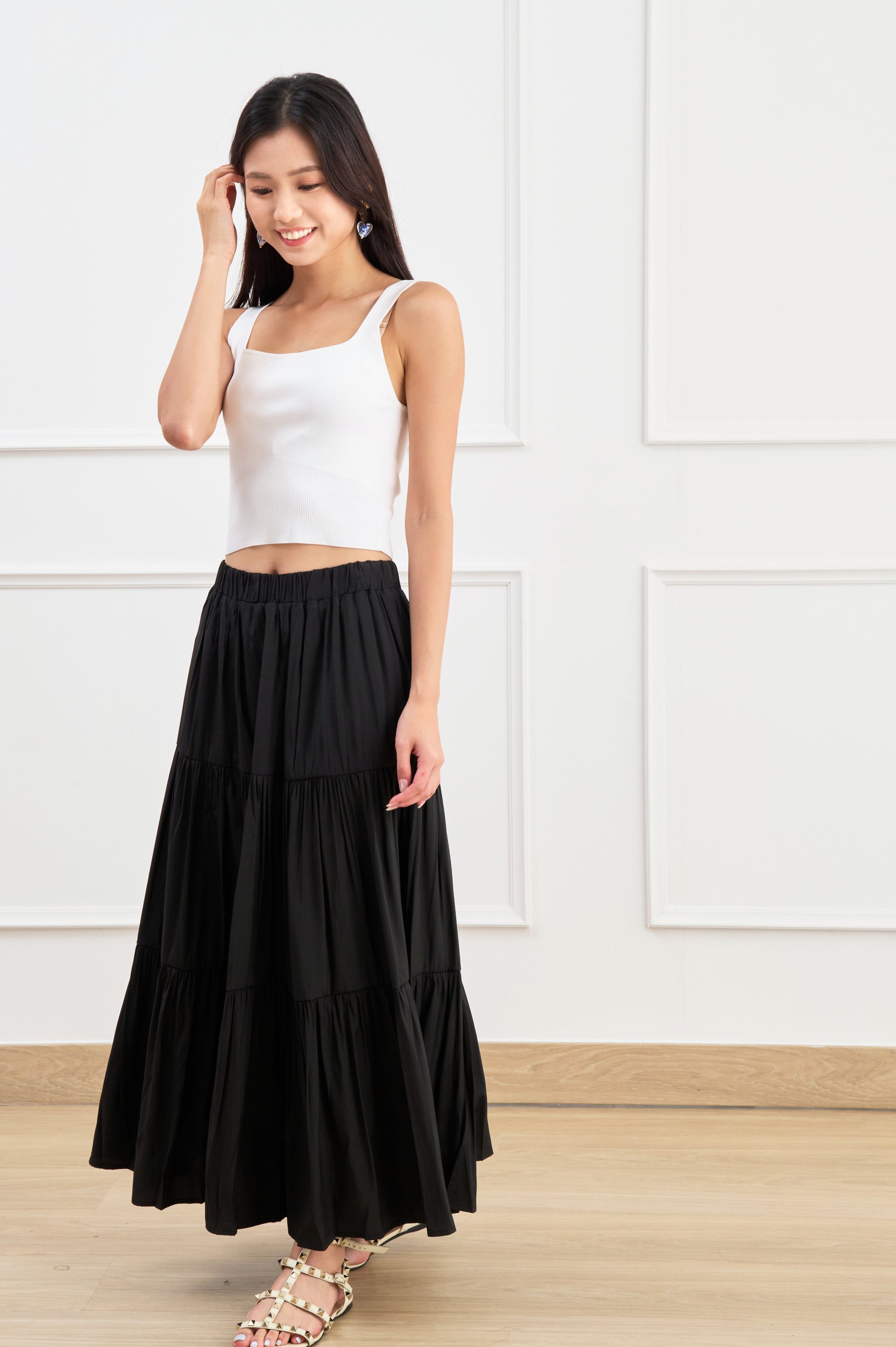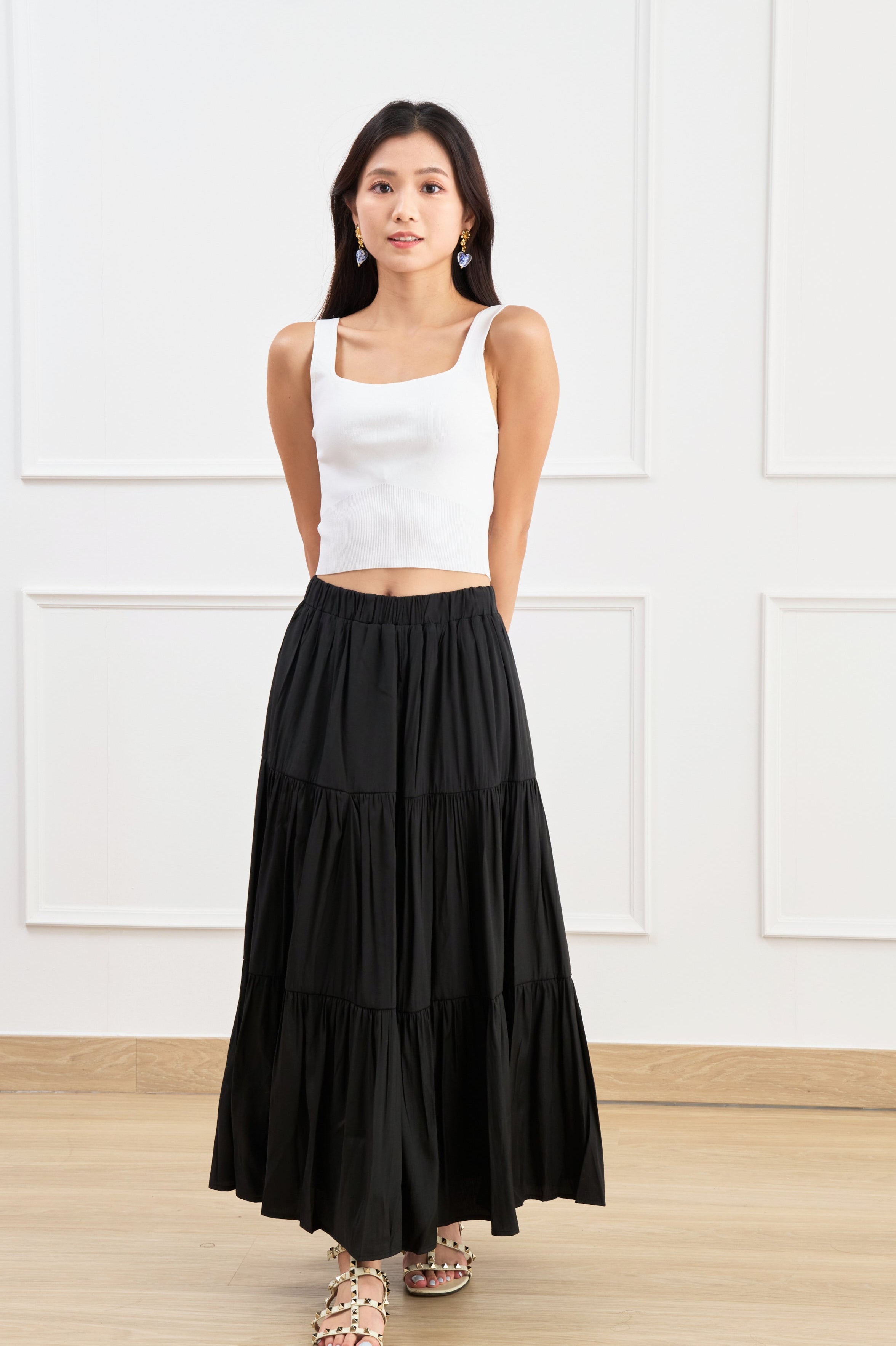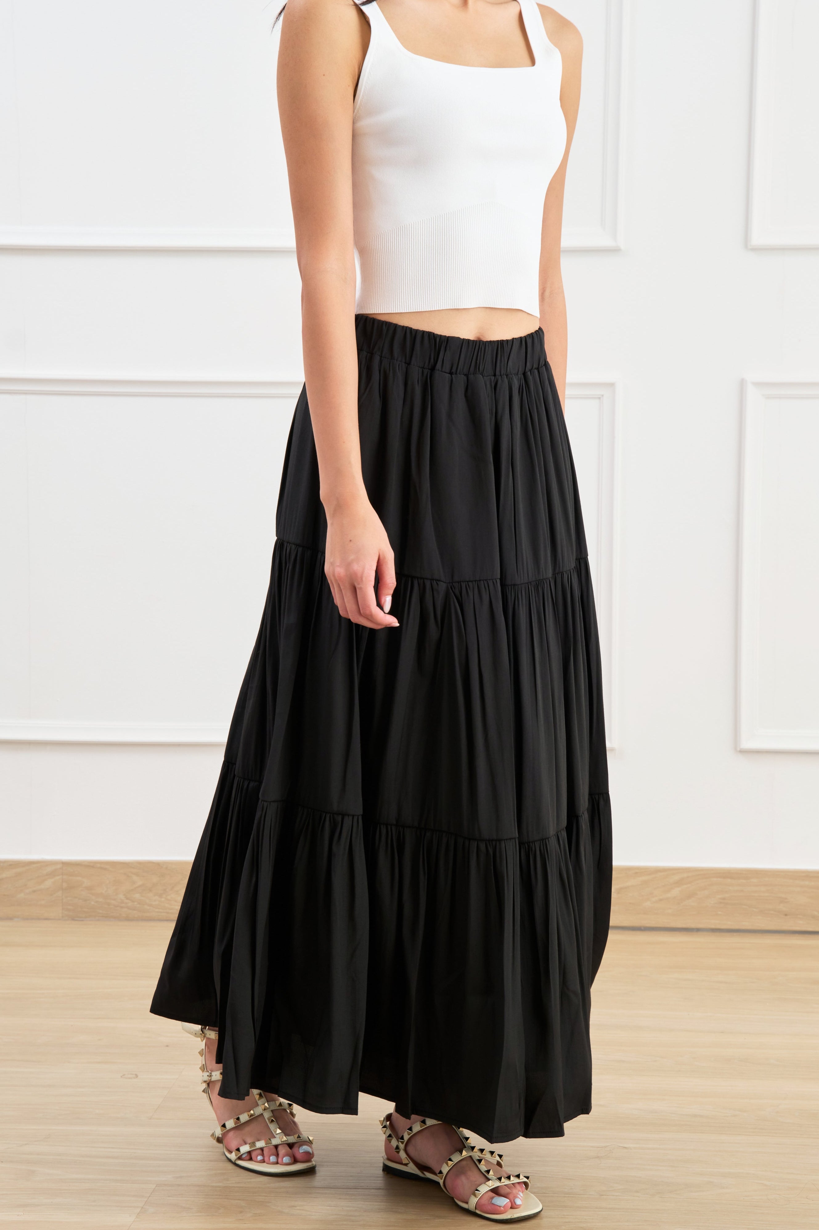 This stylish black maxi skirt combines comfort and elegance with its relaxed fit.
