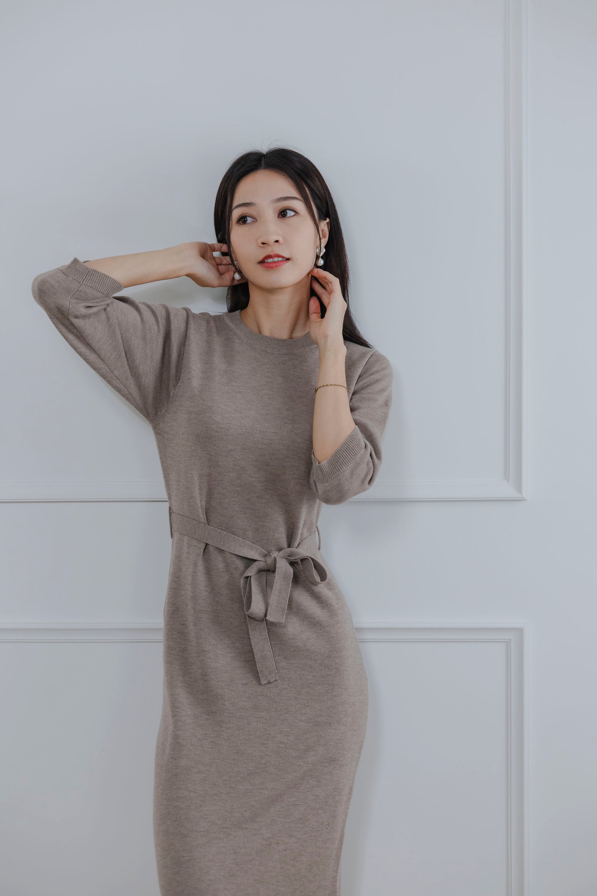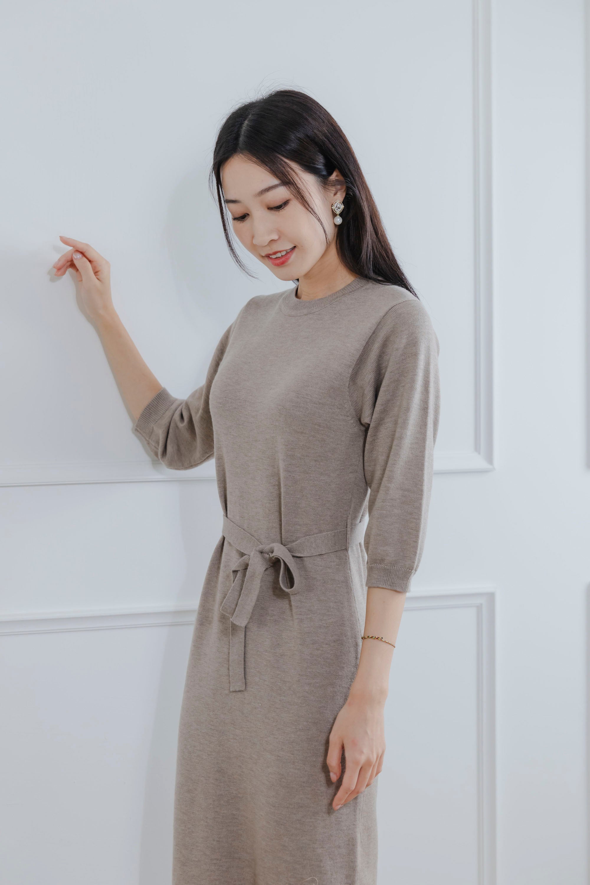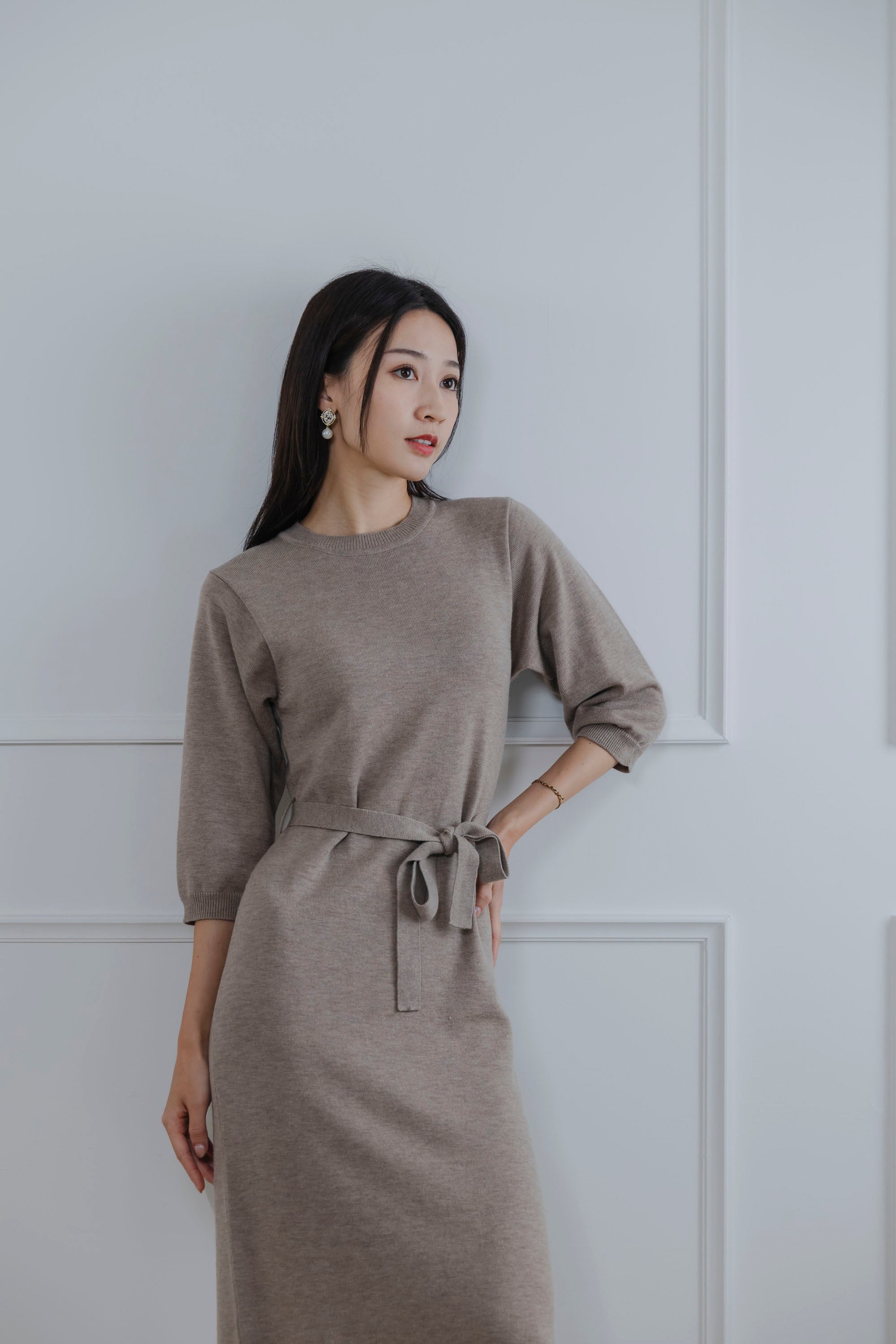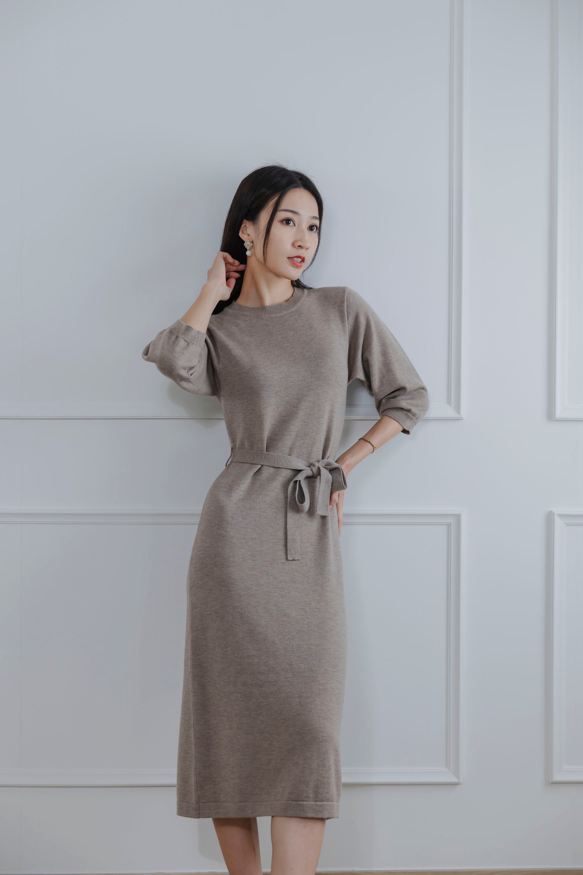 Elaine Beige Knit Maxi Dress