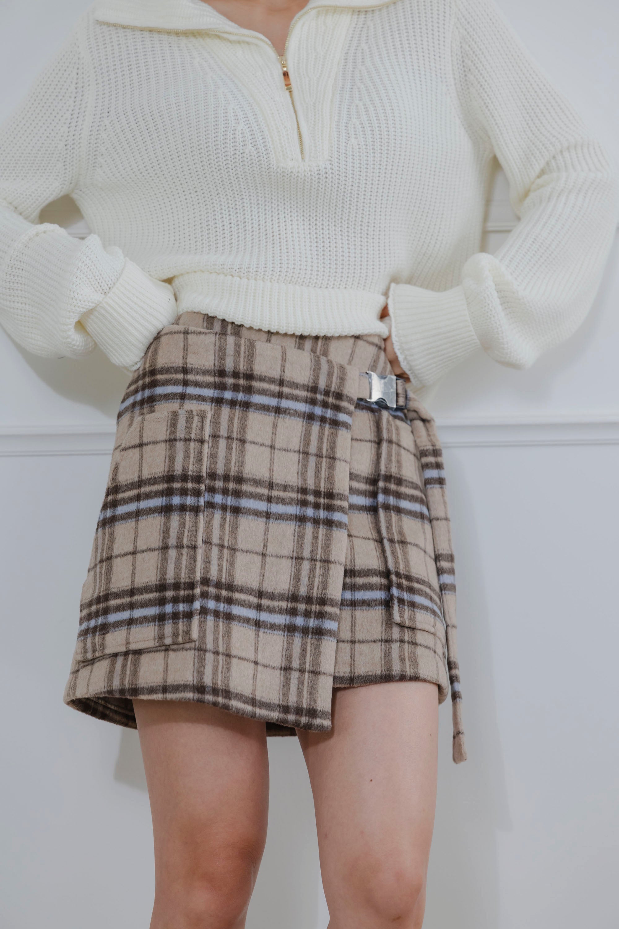 Michelle Checkered Wool Skirt