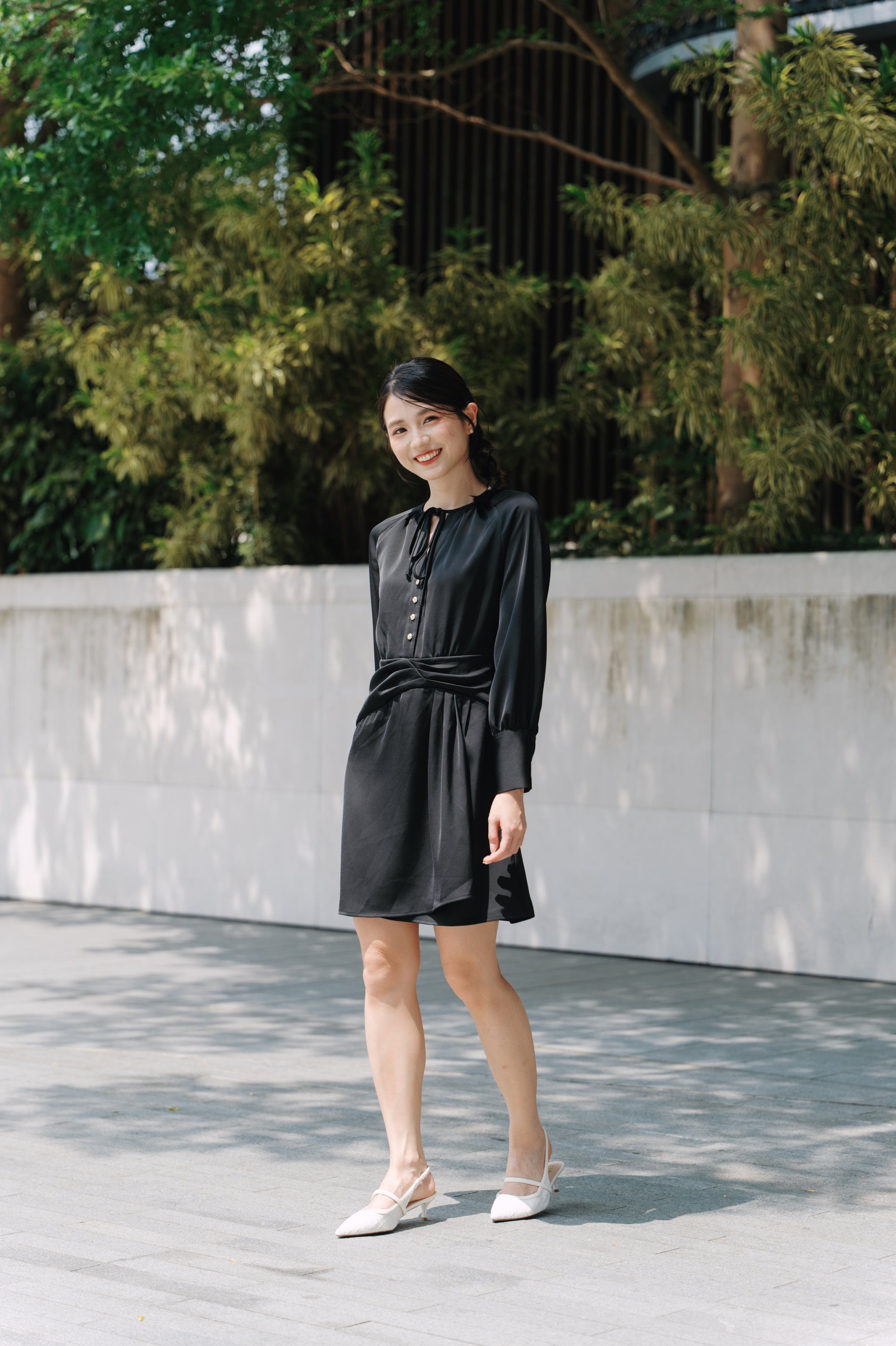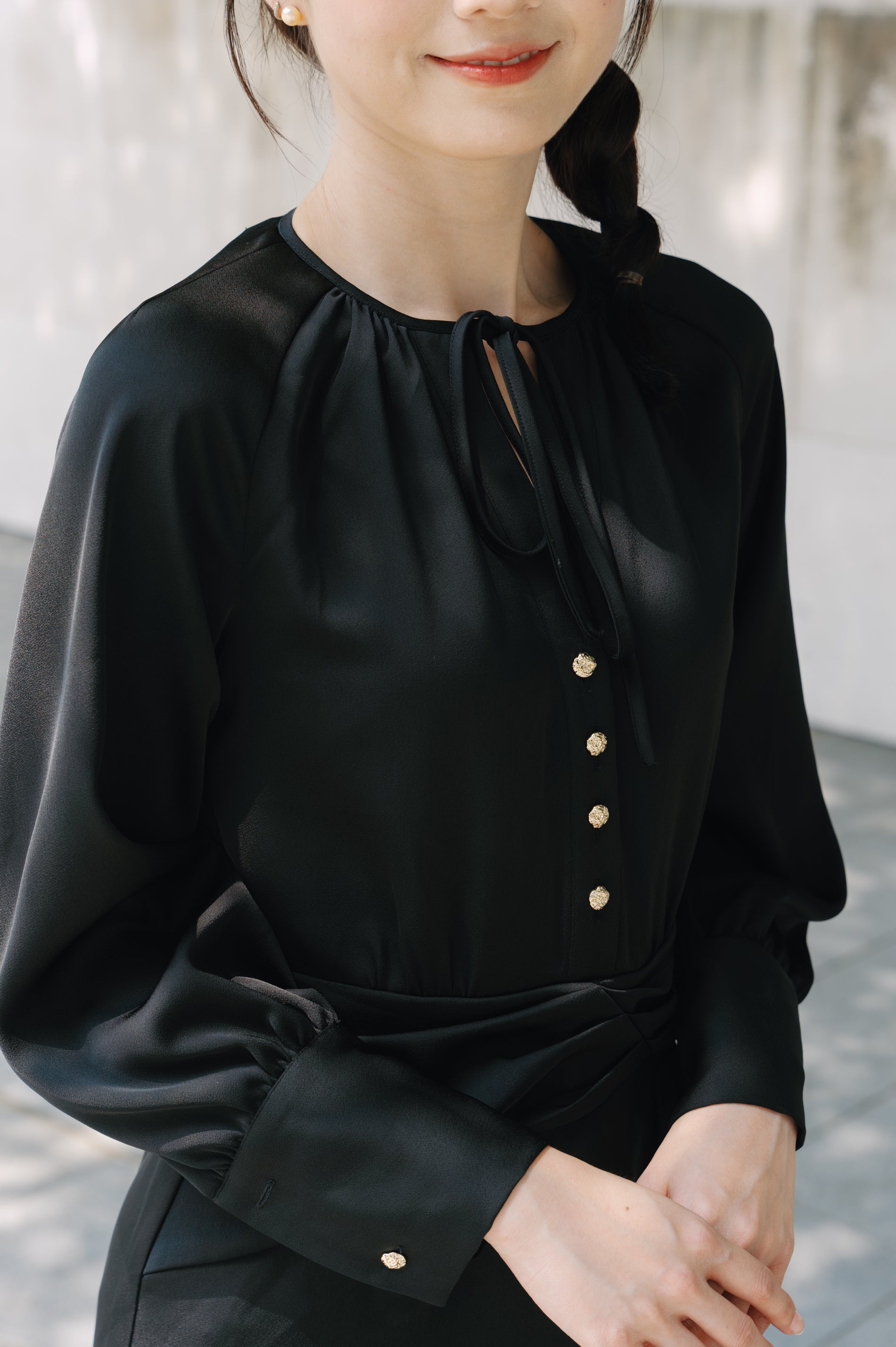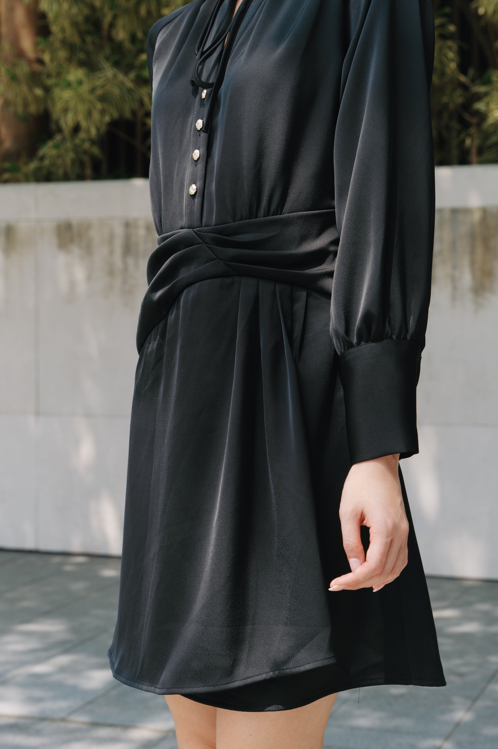 The cinched waist flatters the figure and creates a sleek silhouette.