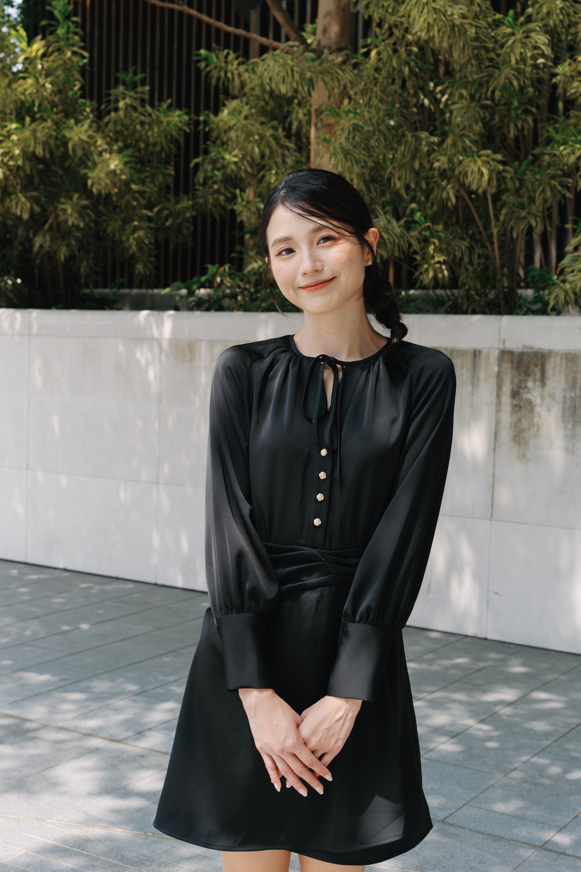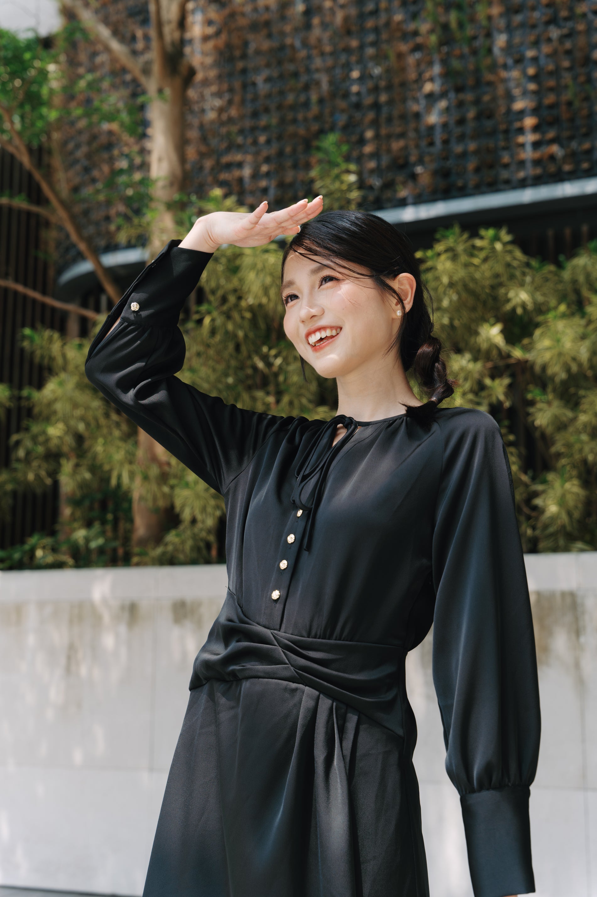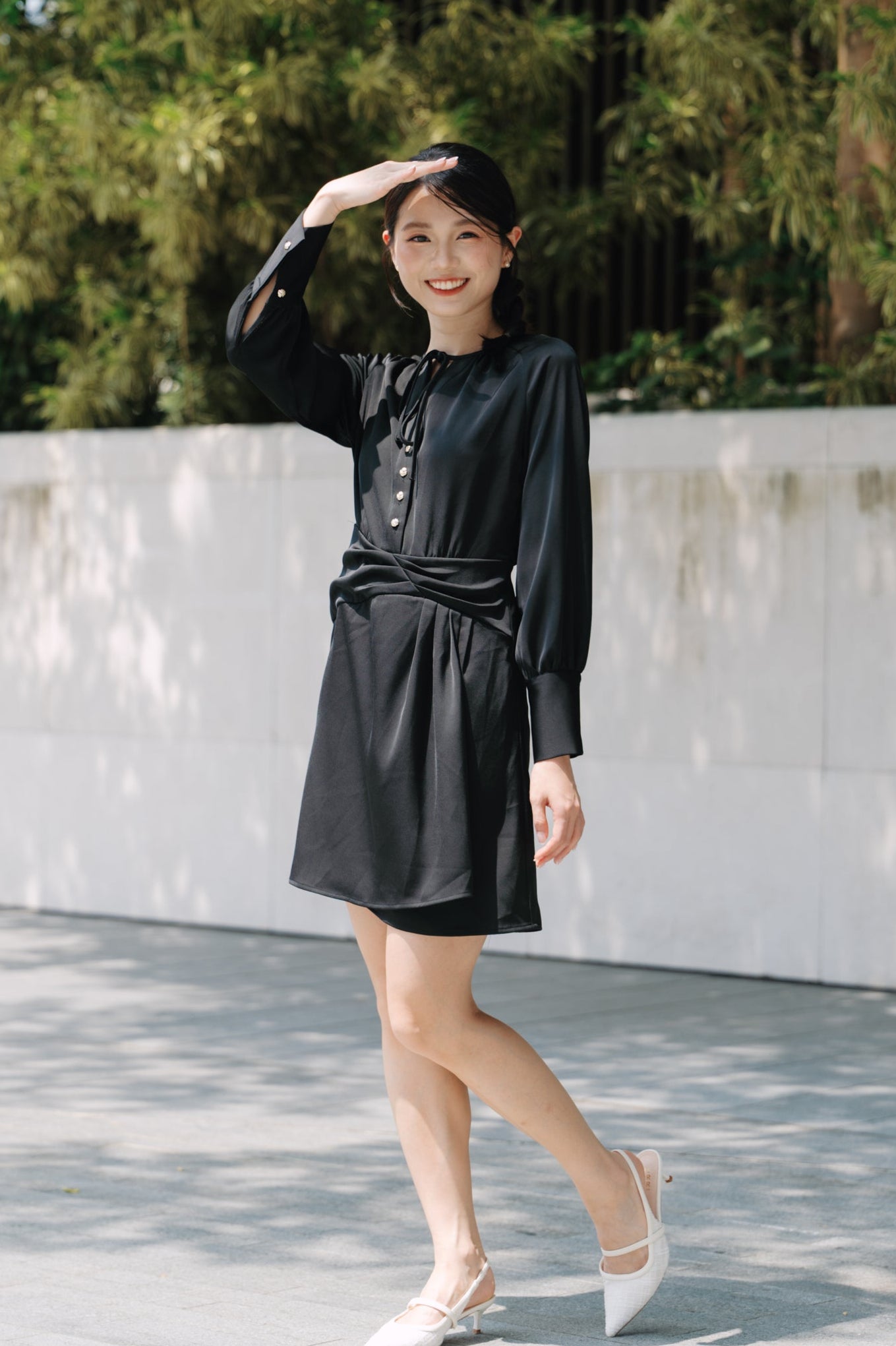 The cinched waist flatters the figure and creates a sleek silhouette.