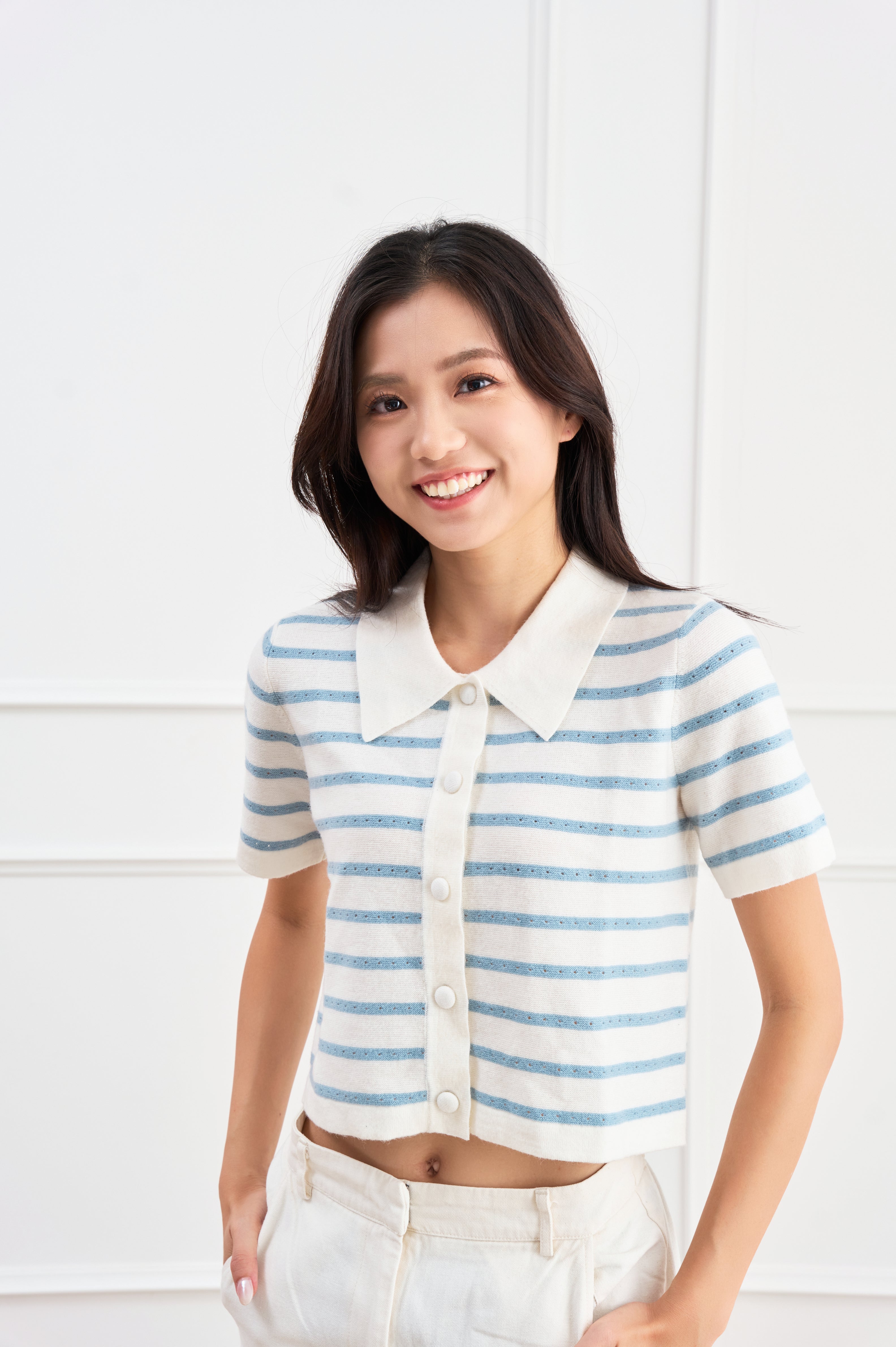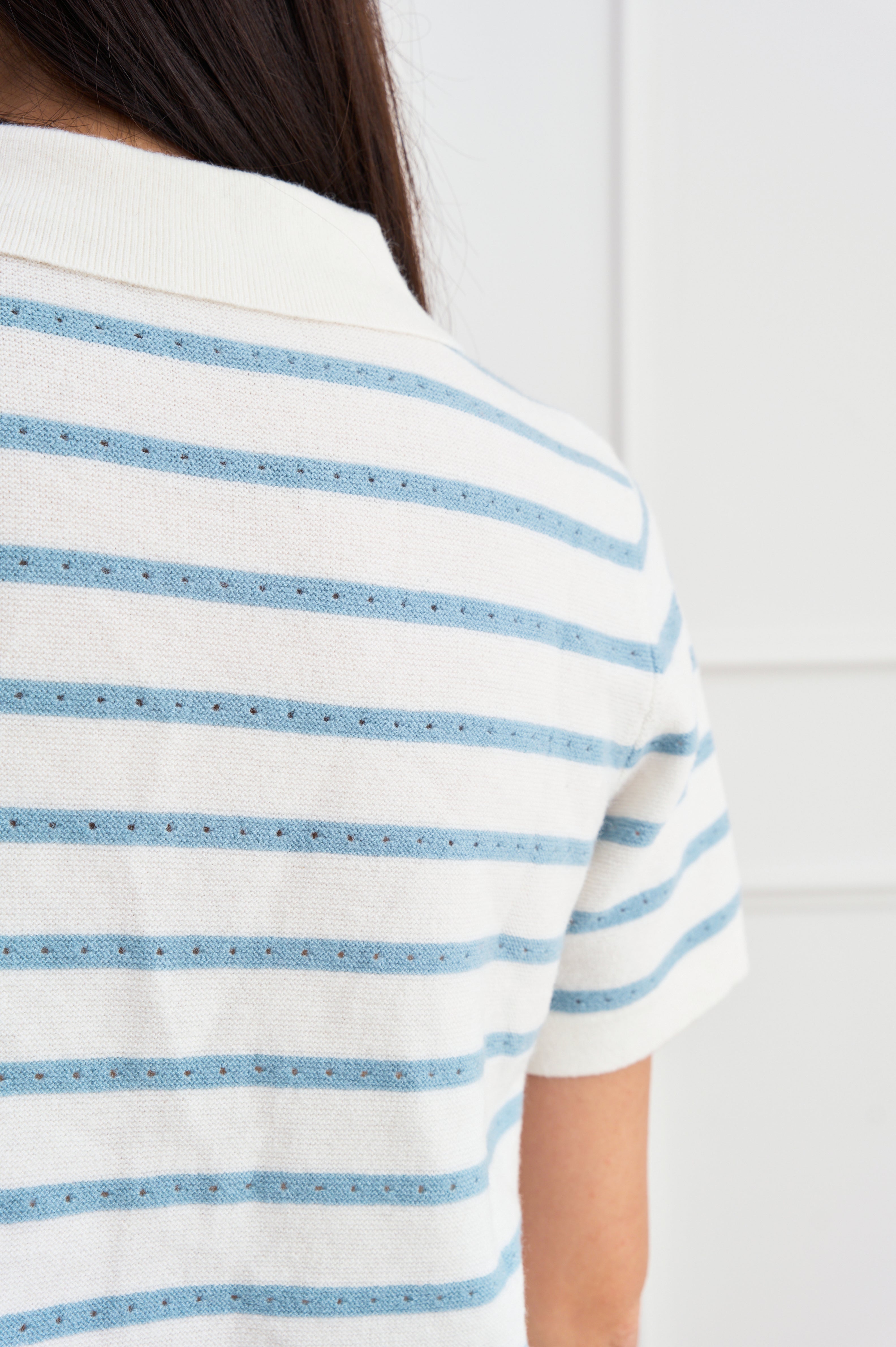 The top features a classic striped pattern, alternating between light blue and white, creating a fresh and vibrant look.