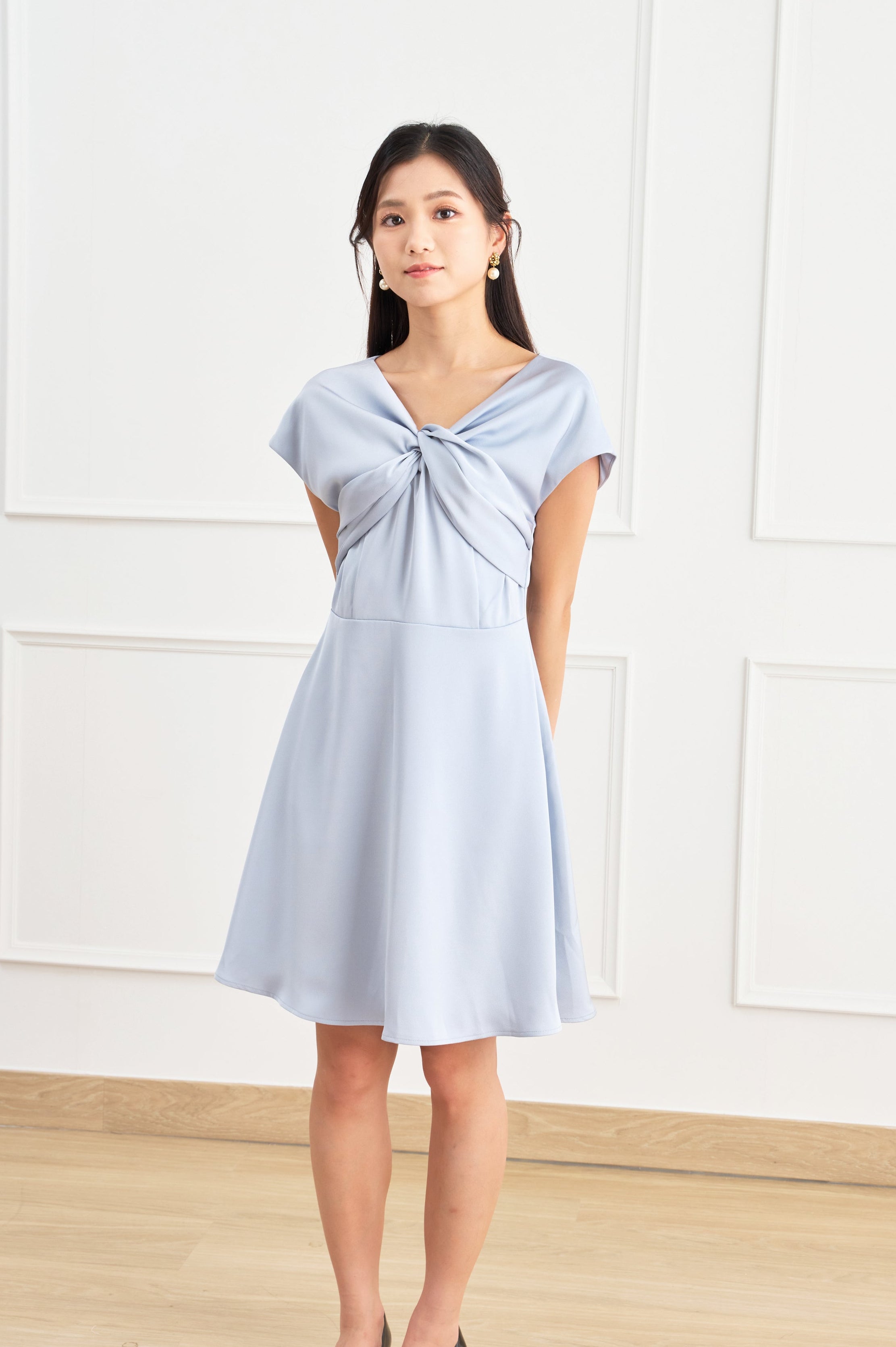 The soft blue hue adds a refreshing touch, while the unique knotted detail at the front enhances its visual appeal.