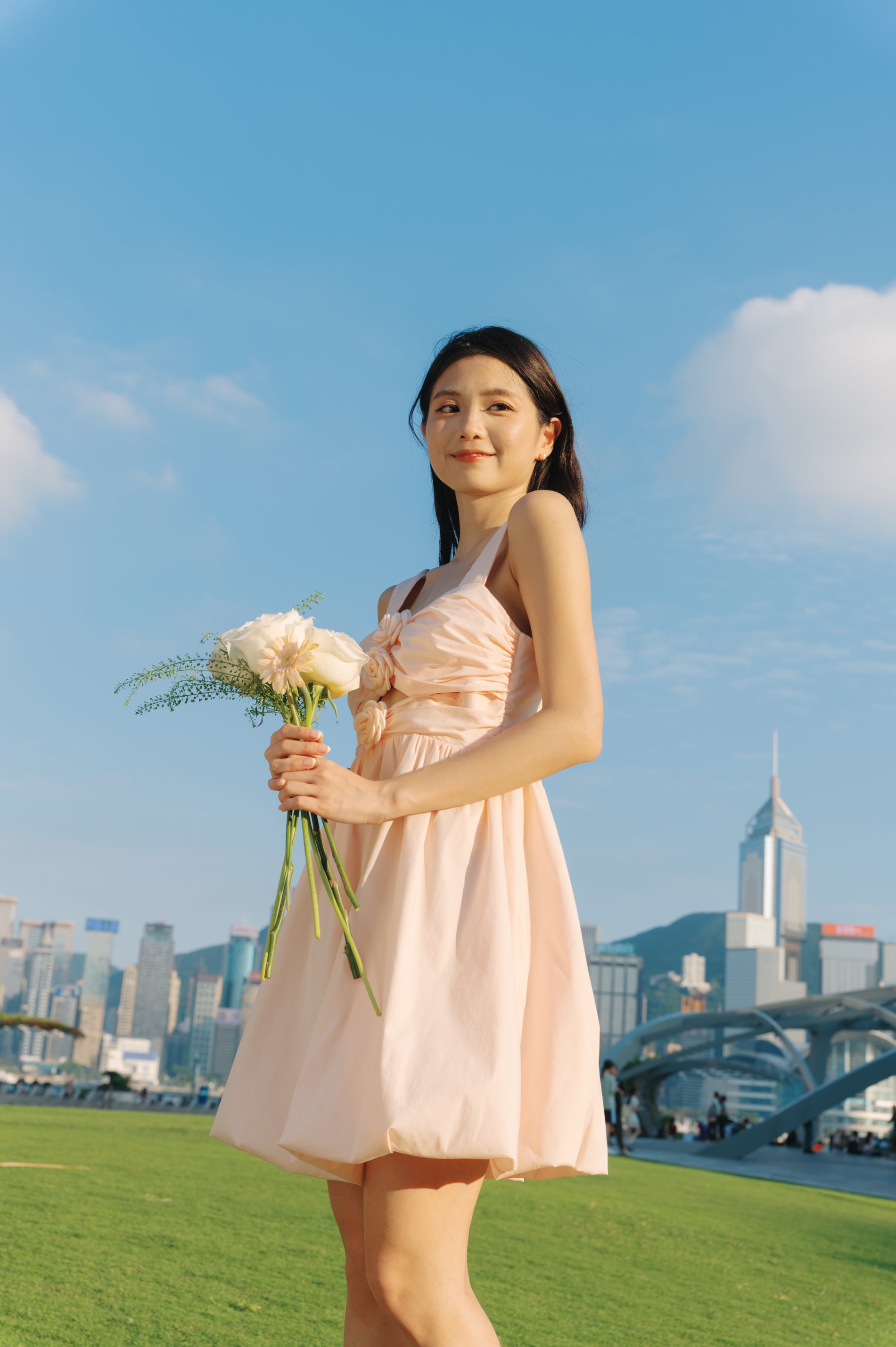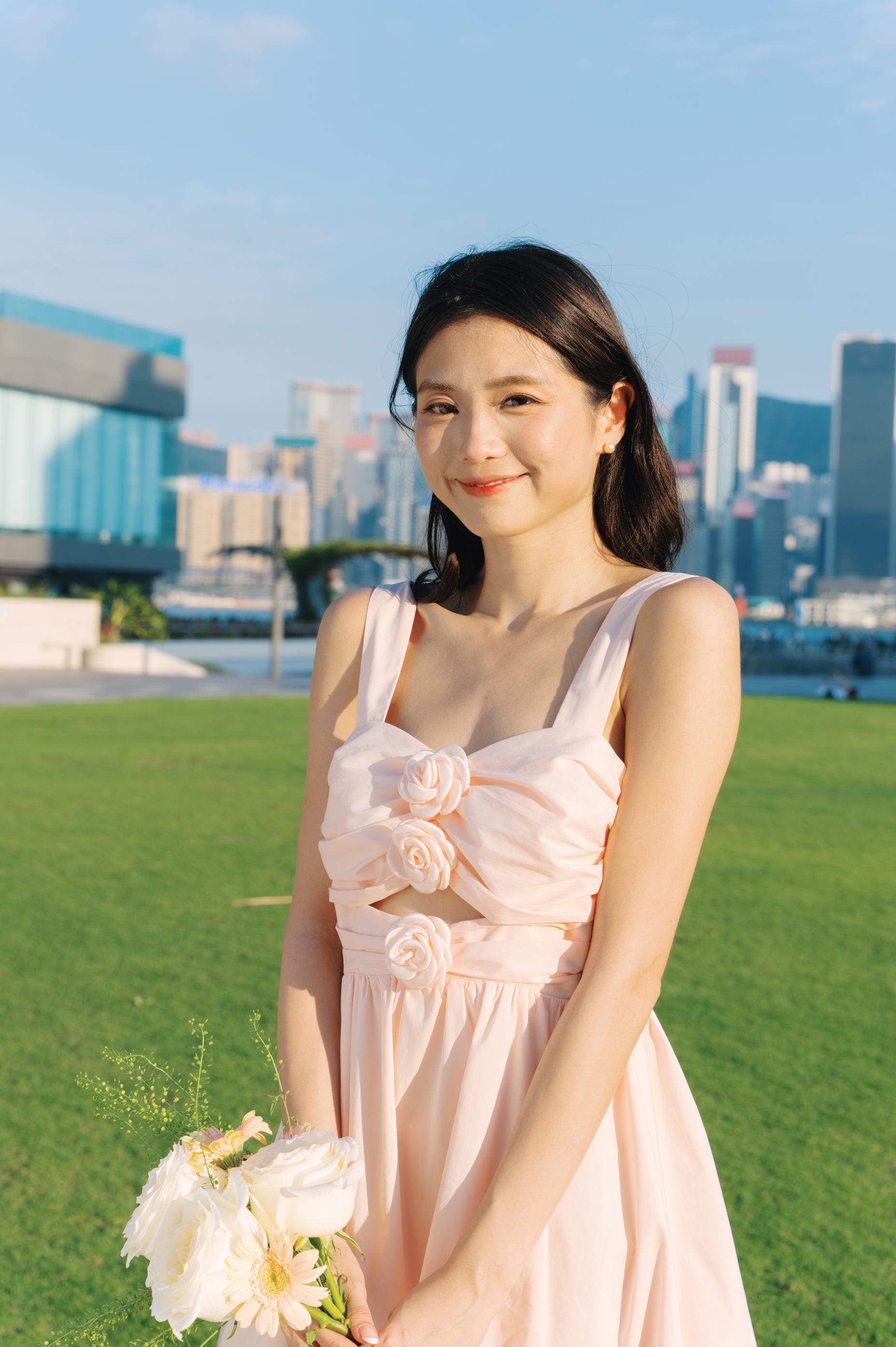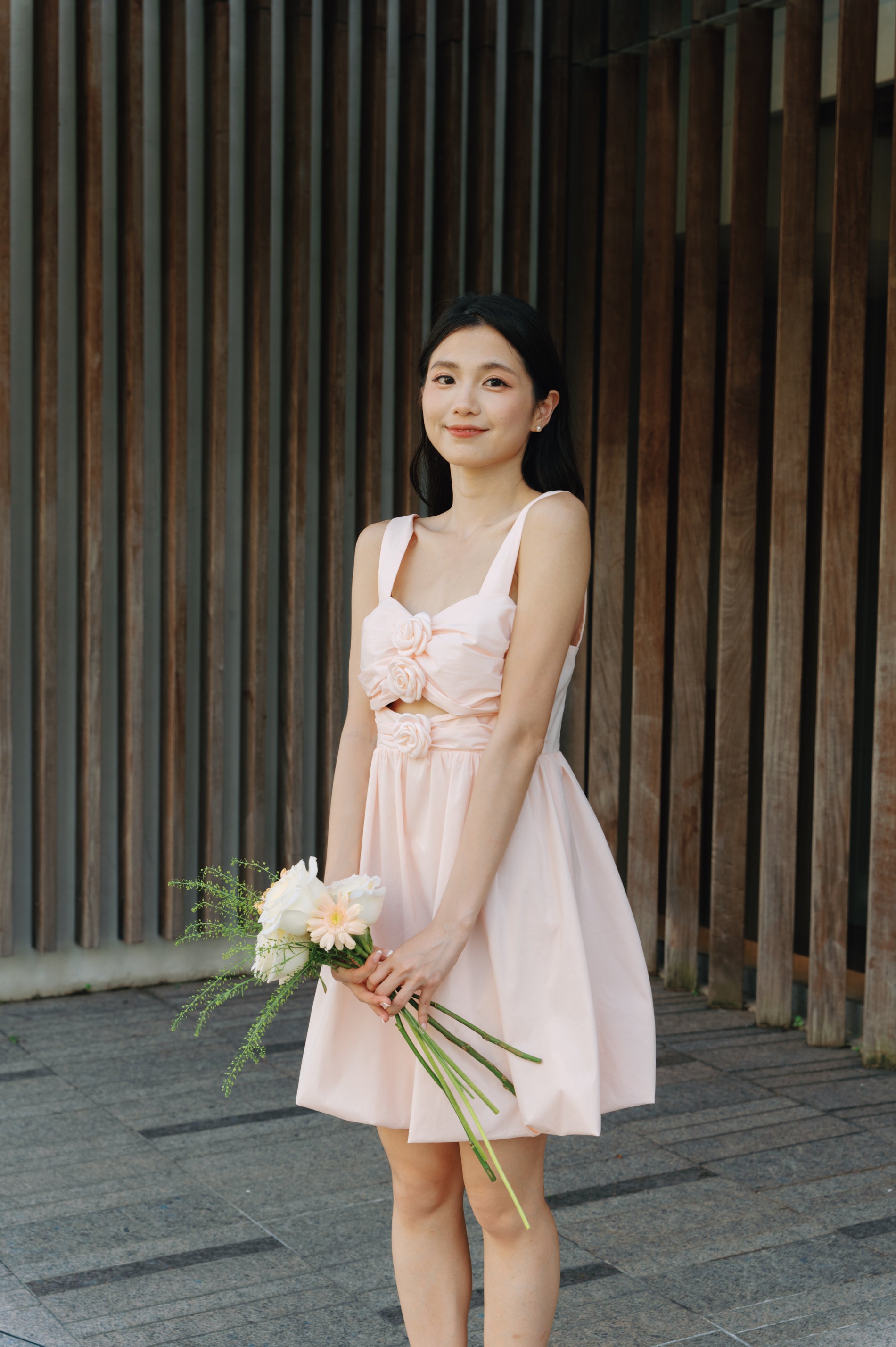 This charming pastel pink dress exudes a youthful and romantic vibe.