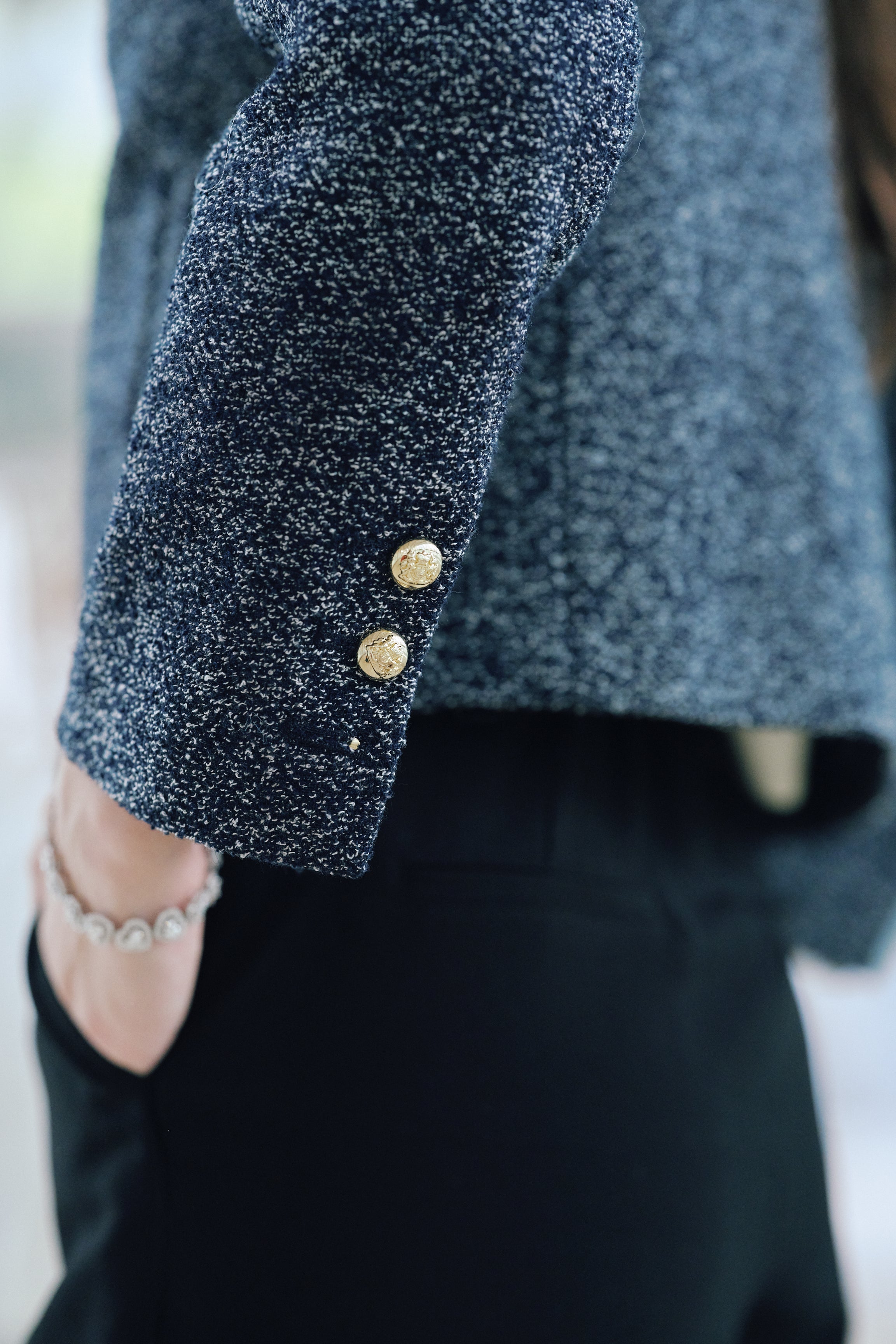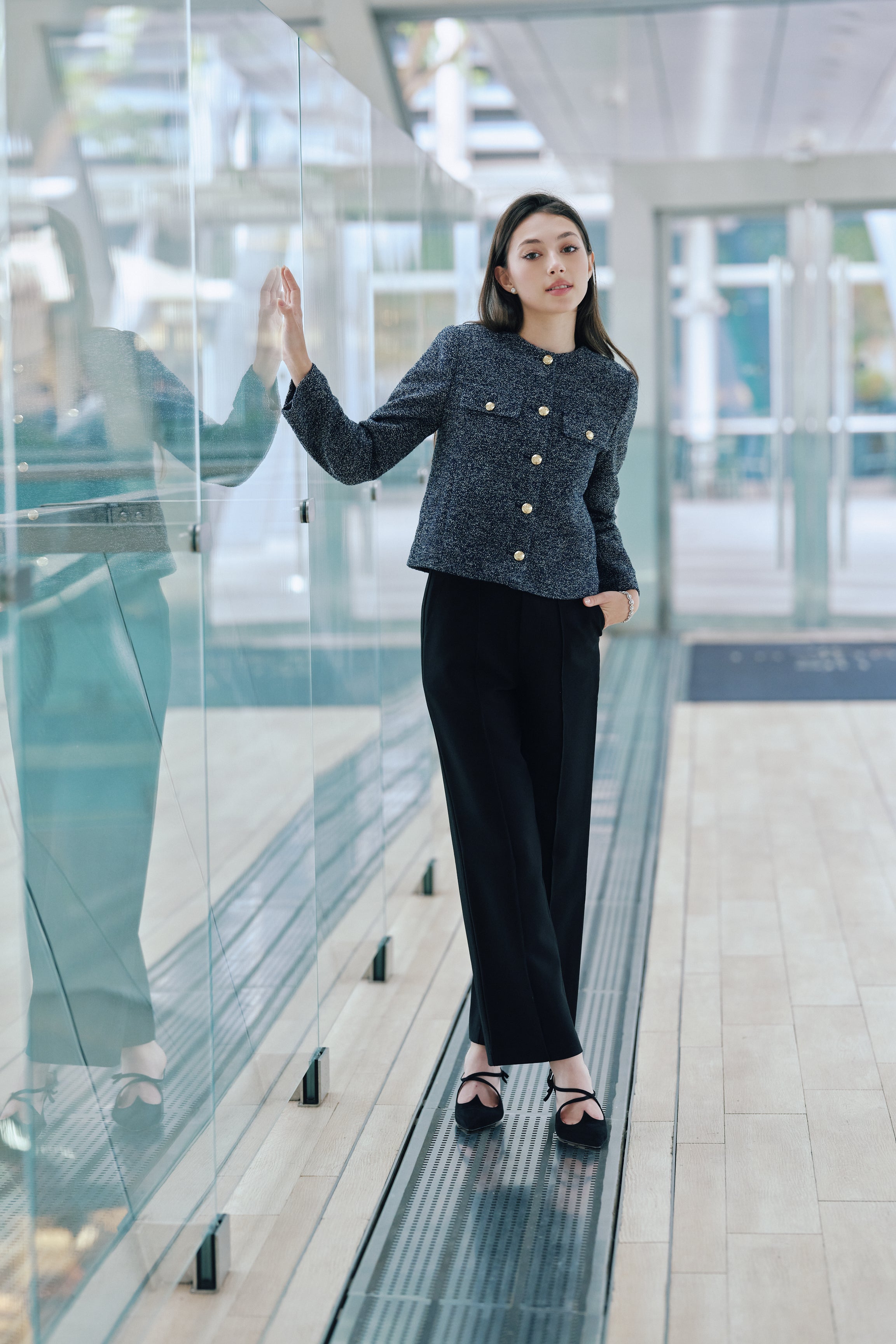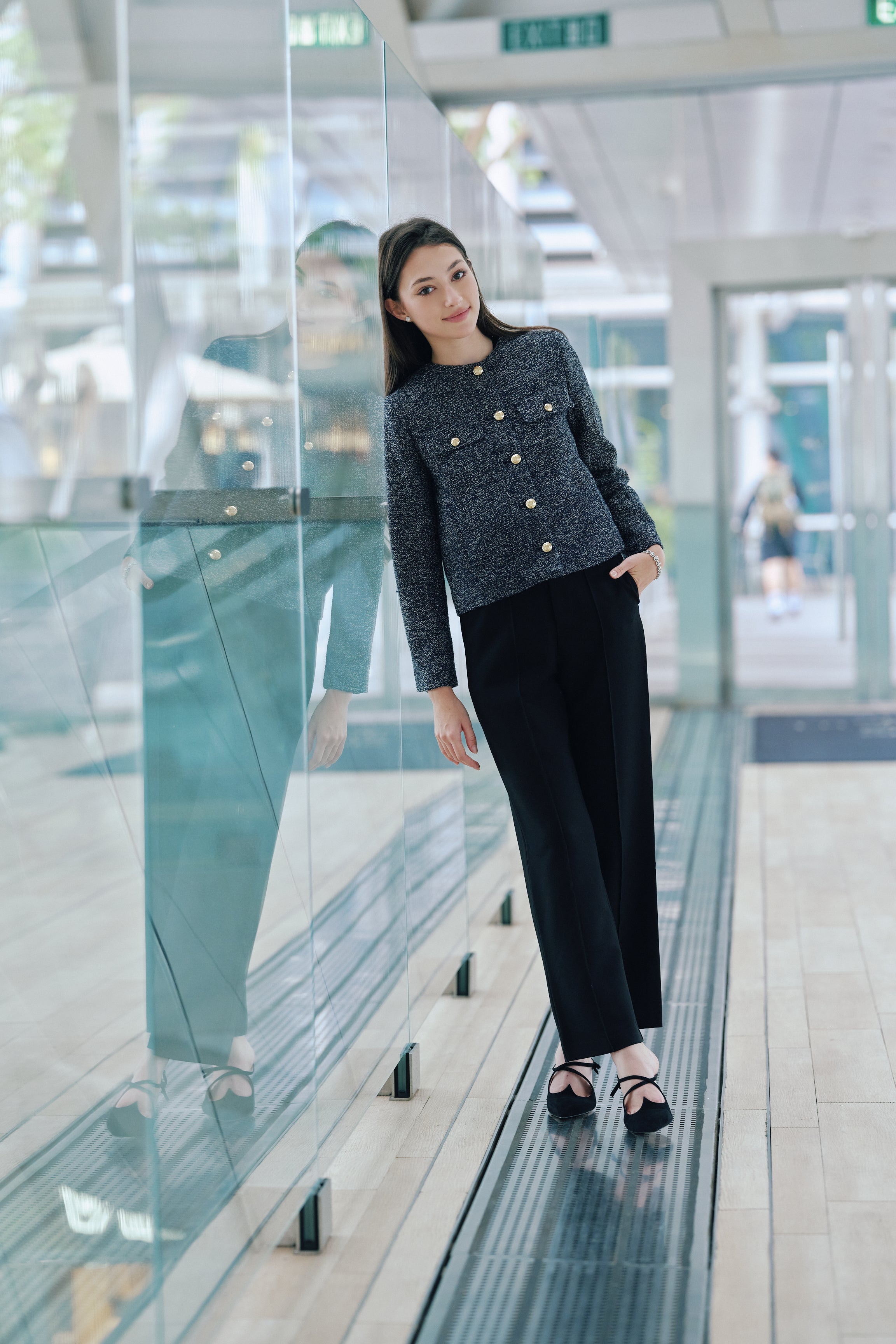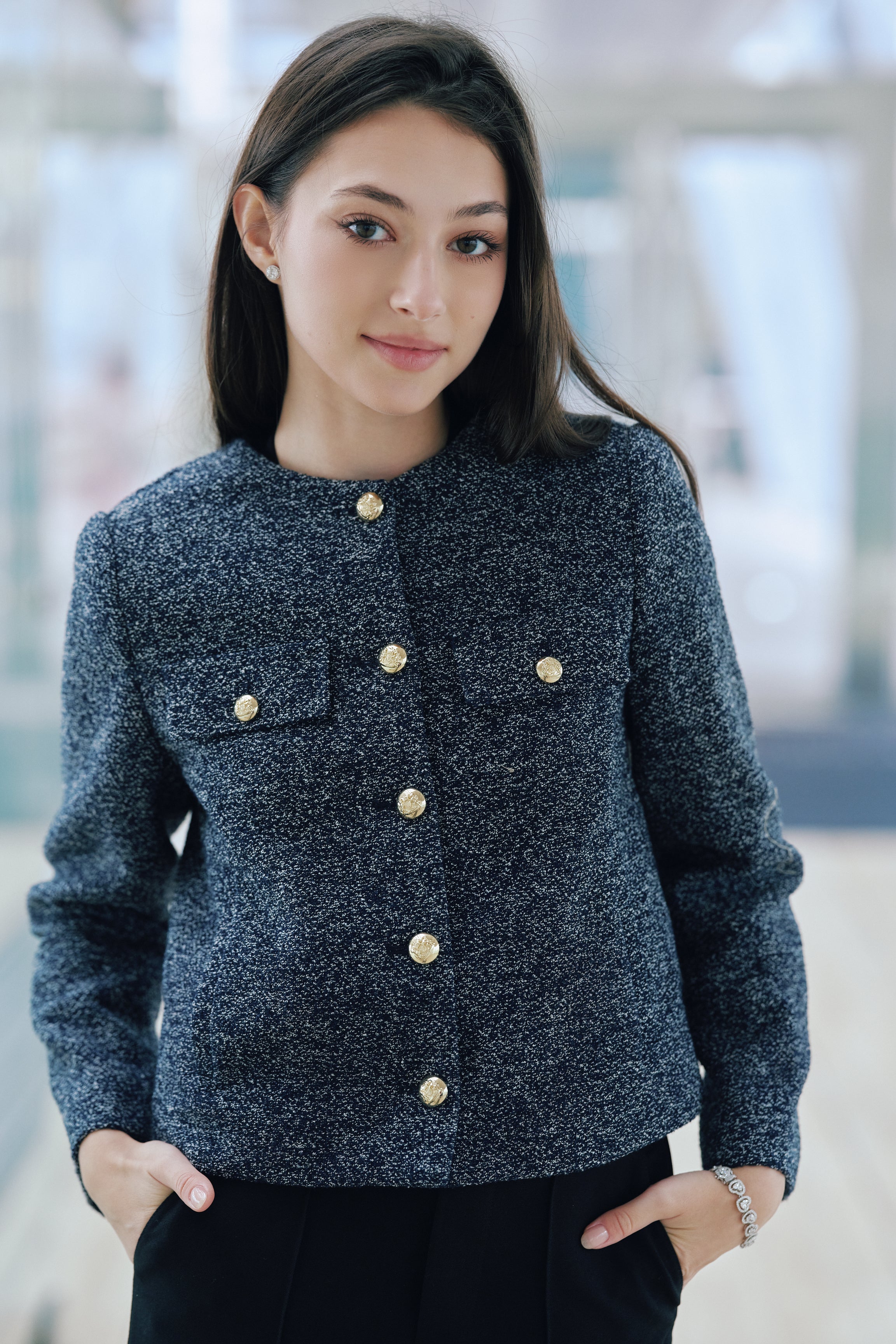 • Tweed fabric with a speckled pattern, adding depth and interest.