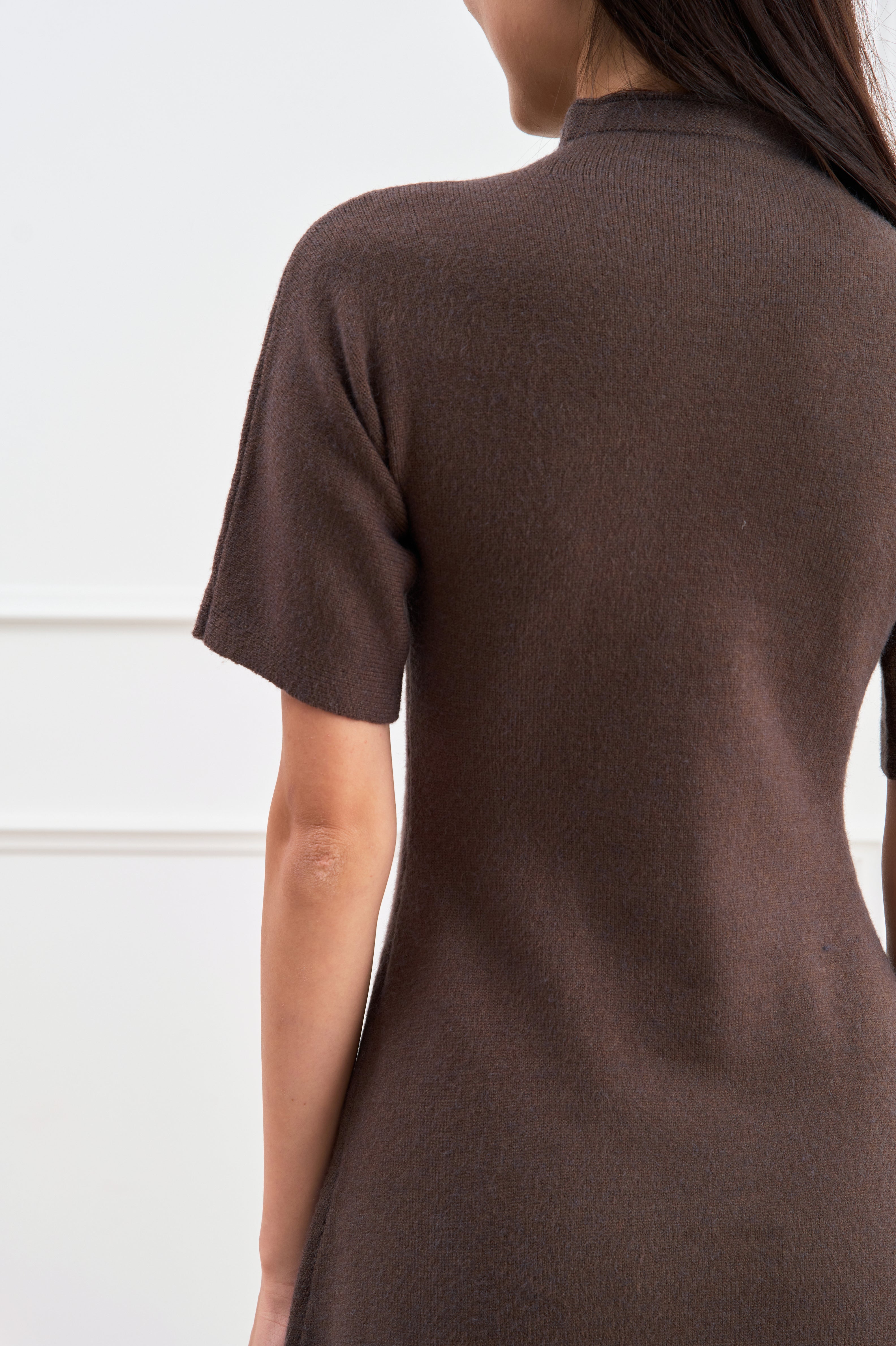 A rich, warm brown tone and knitted fabric that adds warmth and a cozy feel.